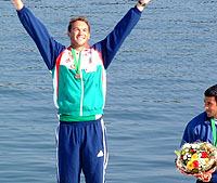 | Szabó Szilvia a női kajak négyes 500-as győzelméről a poznani vb-n: "Elindultunk, aztán nagyon siettünk." (2001.08.27.) |