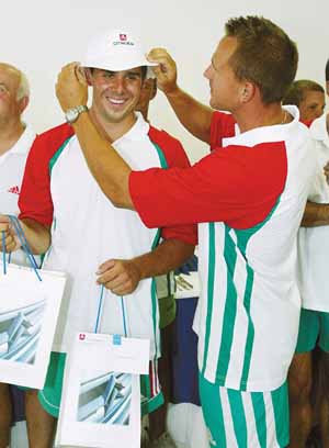 Angyali terv: több Eb-címet a tavalyinál Úgy tűnik, minden adott ahhoz, hogy a július 18-án kezdődő szegedi kajak-kenu Európa-bajnokság minden szempontból nagy sikert hozzon. Tegnap a dunavarsányi edzőtáborban már a végleges Eb-keretet is kihirdették, s a rangos névsor jó eredményekkel kecsegtet. Angyal Zoltán szövetségi kapitány döntése alapján a női kajak kettesek 1000 m-es számában - Kovács Katalin helyett - Szabó Szilvia lesz Bóta Kinga párja. ![]() Kammerer sapkapróbájához Storcz asszisztál A négyesben Janics Natasa helyett Viski Erzsébet ül a hajóba Paksy Tímea, Móni Katalin és Keresztesi Alexandra mellett. A férfi kenu négyeseknél - amint azt már korábban bejelentették - a sérült Zala György helyett Novák Ferenc került be a hajóba. Novák Iván Gáborral, Belicza Bélával és Kozmann Györggyel alkotja a négyest. - A tavalyi Eb előtt hat aranyat reméltem, de végül többet szereztünk - mondta Angyal Zoltán szövetségi kapitány. - Remélem, most is túlteljesítjük a tervet. rm, A színes Sport 2002.07.12. |