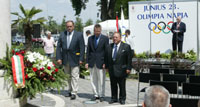 E jeles eseményre évről évre a nemzetközi olimpiai nap keretében emlékezik a világ sportja. A Magyar Olimpiai Bizottság szerda délben a Duna-parti olimpiai szoborparkban rendezett ünnepségen a házigazda Steiner Pál, a Belváros-Lipótváros polgármestere köszöntötte a szép számmal megjelent olimpiai bajnokokat, érmes helyezetteket, Füleky Andrást, a minisztérium államtitkár-helyettesét, s a MOB elnökségének tagjait. Büszkén beszélt arról, hogy ilyen szoborpark – ahol az olimpiai bajnokok emlékét márványba vésve őrzik – a világon egyedül Budapesten létezik. Befejezésül jó szereplést kívánt az utódoknak és azt kívánta, hogy lehetőleg minél több újabb bajnok kerüljön fel a Duna-parti márványtáblára.
