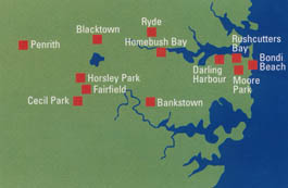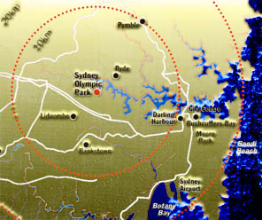 Az Olimpiai Park 16 km-re fekszik a belvárostól a Homebush Öböl