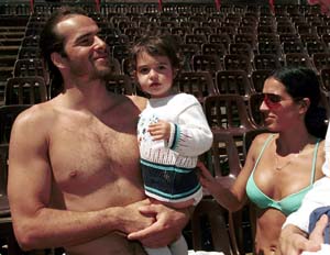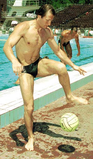 A válogatott napi két edzéséről már csak a négy Bajnokok Ligája-résztvevő, Kásás Tamás, Steinmetz Barna, dr. Molnár Tamás és Biros Péter hiányzik. Szerdán hajnalban ők is hazaértek, de még nem álltak csatasorba. Kásás Zoltán már tegnap a kapitány segítségére volt az edzéseken. Ma Sopronba utazik a csapat bemutató meccset játszani. Dr. Kemény Dénes csapata túl van egy mini alapozáson, melyen sikerült egy szintre hoznia a különböző erőállapotban lévő játékosait. - Elszánt és egy kicsit feszült, de nem rossz a hangulat a csapaton belül - ad helyzetjelentést a kapitány. - Ez a keretszűkítésig valószínűleg meg is marad, ami természetes, és majd csak utána szabadulnak fel a játékosok. Most a taktikai repertoárt kell gyakorolni, illetve bővíteni. Érdekesség, hogy az Eb-n, az Európai Szövetség szabályai szerint a neonzöld lasztival játszanak, a világbajnokságra viszont elő kell majd venni a jó öreg Mikasát, hisz a FINA azt írja elő. Kemény Ferenc - a kapitány édesapja - Kiss Gergőt látva megjegyezte: örülök, hogy ilyen nagy maradt a vállad. Gergő csak annyit felelt: az a baj, hogy a hasam is. Märcz Tamásnak edzés előtt akadt még vizsgázni valója a külkerfőiskolán. Edzés után pedig az eddigi főszereplők, Benedek, Vári, Székely, találták mellékszerepben magukat. A jól megérdemelt pihenő előtt statisztáltak egy reklámfilmben. ![]() Parton is megy a játék (buda balázs), A Színes Sport 2001.05.24. Újabb támogató sorakozott föl pólósaink mögöttKétharmad már elkelt Akár a labdát és az úszónadrágot is könnyűszerrel zálogba csaphatják a pólósok. Reméljük, nem kerül rá sor, de jó tudni, a bajban kéznél a segítség. A magyar vízilabda-válogatott és a BÁV Rt. együttműködési támogatói szerződést írtak alá tegnap. A sajtótájékoztatón természetesen a közelgő Európa-bajnokság is szóba került. - Szerencsére jól fogynak a jegyek - kezdte dr. Martin György, a pólószövetség elnöke. - A belépők mintegy kétharmada talált gazdára eddig, természetesen a magyar férfi- és női csapat mérkőzései a legkelendőbbek. Mindenesetre már most kijelenthetjük, hogy a Hajós Alfréd uszoda megnövelt lelátóin minden hely gazdára talál. ![]() Válogatottunk erőssége, Benedek Tibor és családja JK, A Színes Sport 2001.05.26. |