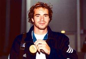 Micsoda ünneplés volt! A hatalmas tömegben nem lehetett észrevenni, amint a vízilabda-válogatott tagjai végre beléptek a fogadásuknak otthont adó csarnokba. Egyvalami mégis százszázalékos biztonsággal jelezte érkezésüket: a több száz leánytorokból feltörő sikoly. Először Vári Attila mindenki más fölé magasodó fejét lehetett felismerni, ez pedig épp elég volt a rajongóknak ahhoz, hogy kétségkívül legnagyobb kedvenceik üdvözlésébe kezdjenek. A szeretetnek ez az áradata elsöpörte a terem közepén felállított korlátot, melyet a rendezők a szurkolók és a sportolók, valamint hozzátartozóik közé szántak, és a drukkerhad ellepte a "kiváltságosoknak" fenntartott területet. A családtagokat megelőzve (igaz, legalább akkora szeretettel) így elsőként az autogramkérők üdvözölték az újdonsült olimpiai bajnokokat. Minden játékos körül kisebb-nagyobb csoportosulás alakult ki. Ők pedig röpke húszórányi repülőút után fáradhatatlanul vésték a nevüket papírra, pólóra és zászlóra egyaránt. És amikor Fodor Rajmundtól azt kérdezte egy tíz év körüli kislány, megnézheti-e a bajnok nyakában lógó aranyat, a játékos röviden így válaszolt: "Persze". Az ifjú rajongó pedig minden oldalról megvizsgálta a medáliát, és egy picit talán ő is győztesnek érezte magát. (mellesleg ez a kézenfekvő kérés nem sok szurkolónak jutott eszébe.) ![]() Szécsi Zoltán, aki az elődöntőben nyújtott káprázatos teljesítményével a fináléba védte a csapatot, pillanatnyi magányában szeretteit fürkészte. Arról, hogy mivel telt az utazás, a hálóőr a következőt mondta: "A repülőn inkább pihentünk, mivel nagyon elfáradtunk a vasárnap egész éjszaka tartó ünneplésben. Mindenesetre medencét még egy jó ideig nem szeretnék látni." A magyar-jugoszláv meccs hőse egyébként saját bevallása szerint csak most kezdi felfogni, mi is történt vele. Nem úgy Vári Attila, akinek a döntő első negyedének utolsó másodpercében szerzett szenzációs góljától azóta is hüledezünk. Szerinte ugyanis: "Felfoghatatlan ez az egész." ![]() Bár Kásásék szurkolóik minden kívánságát teljesítették, az igazi attrakció még hátravolt. Dr. Kemény Dénes szövetségi kapitány egyszer csak a színpadra szólította a tanítványait, akik tovább hevítették az amúgy is forró hangulatot. Elsőként Kósz Zoltán kért szót, és a kapus "Hajrá, magyarok!" kiáltását visszhangozta az egész csarnok. Majd a fiúk bemutatták, miként szokták hergelni magukat a meccsek előtt. "Ki a jobb?" A választ persze mindnyájan ismerjük. Ezután következett Kiss Gergely (akit leginkább a bal kezéről ismerünk), és pezsgővel kezdte locsolni a pódium közelében állókat. Amikor a vízilabdázók az ünneplés után elhagyták az épületet, a szurkolók fele is távozott. Mentek a kedvencek után. (csurka g.), A színes Sport 2000.10.04. |