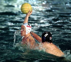 padlóról... Fröccs Érzékeltetésképpen egy jelenet, amely után az uszodában, illetve a televíziókészülékek előtt ülő nézők körében egyértelművé tehette, idejekorán feladta a meccset a Fradi: második negyed eleje, emberelőnyben céltalanul adogatnak a vendégek (a táblán 4-0-ás hazai vezetés, azaz elméletileg nincs veszve semmi, csak nehéz a helyzet), majd Nyéki vállalkozik lövésre. A jó ütemben odaérő Ofner blokkol, majd a Honvéd pólósa a bajnoki elődöntőhöz illő felhevült állapotában tovább bosszantva az ellenfelet, odaföccsköl neki. Parázs lehetne a jelenet (ráfért volna a meccsre...), normális esetben az is lenne. Ám Nyéki nem reagál, tűr, kis túlzással azt is mondhatjuk, hagyja, hogy bohócot csináljanak belőle. Ez volt a jellemző a Fradira a találkozón... amler, Nemzeti Sport 2001.04.17. ![]() A fehér sapkás Honvéd elgázolta a Fradit Honvéd-vízitorpedó Vasárnap nem babra ment a játék a vízilabda bajnoki rájátszás elődöntőjének első meccsén. A Honvéd-FTC párharc kezdetét a piros-fehérek vették komolyabban, 4-0-ra elhúztak az első negyedben. A második negyed végén tudta csak Matajsz megszerezni az FTC első találatát. A Honvéd továbbra is jobban összpontosított, s míg Pelle jó napot fogott ki a kapujában, addig az ellenfélnél Kósz nem. Az utolsó negyed előtt 9-2-re vezetett a Honvéd, de a végjátékban feljavult az FTC játéka. Annyira, hogy több gólt lőtt a záró részben, mint addig a mérkőzés folyamán. A Fradi súlyos, 12-5-ös vereséget szenvedett a Kőér utcában. Szerdán újra találkoznak, pontok dolgában a Honvéd már 4-0-ra vezet, ha 8 pontig jut, vége a dalnak. Buda Balázs, A színes Sport 2001.04.17. |