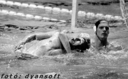 Vasas-BVSC - 2001.04.05 - VASAS ARCOK A képen fő-pozicióban a Vasas egyik "kedvelt" játékosa, Vindisch Ferike. A háttérben a szintén nagy klasszisnak számító Olimpikon, Vári Atika, 10-es számmal a sapiján. - EGY BVSC ARC Igen, igen, ő bizony Madaras a kis kék 3-as fejvédőjében, a Vasas-háló egyik nagy ellensége. - ÖLELJ ÁT! És hát vannak pillanatok, amikor a harctértől távul a játékosok ki tudják mutatni egymás iránt érzett szeretetüket :-) - TÁRSAS-TÁNC Talán mindegyikük járt tánciskolába, és hát egy igazi parkett-ördöge minden lehetőséget kihasznál a gyakorlásra. De azért illene a másik szemébe nézni ám! :-) - MEGADOM MAGAM! Egy hivatásos sportoló élete (pláne ha az illetőtőt Szécsinek hívják, és egy Olimpiát megjárt kapus) tele van veszélyekkel. Ha ráfogják a fegyvert nincs mit tenni: kezeket a magasba! - GÓÓÓÓÓÓÓL! Ebből a pillanatból (illetve hát ehhez hasonlóból) ezen a találkozón mindkét csapatnak 6-6 jutott ... Vasas-BVSC - 2001.04.19 - EMBERFOGÁS "Levegőt, levegőt!!!" Mint egy sci-fi-ben: kinyúl egy kéz a mélyből, és lehúzza szerencsétlen vizilabdázót a mélybe; vagy legalább is megnehezíti a játékot. - MADARAS NORBERT "Hm.., most nincs semmi különösebb dolgom, ellebeg itt a vizen, azt' csak lesz valami ..." - VINDISCH FERENC "Győzni, vagy nem győzni? Ez itt a kérdés!" - FERIKE ISMÉT "Merre is van az a fránya kapu .... jesszus!! Olyan messze ?!?!?" BVSC-Vasas - 2001.04.26 - IDŐKÉRÉS Pedig Somossy edző mindent (?) megtett hogy életben tartsa a Vasasban a lelkesedést, de hát ... talán nem is azzal volt a gond. - FIÚK A VÍZBEN Vári Attila a Vasas, illetve Madaras Norbert a BVSC színeiben: minden gondtól mentesen lebegnek a vízben. - VÁRI ATTILA "Te, néé máá ott, mi az a vízben, levelibéka??" - SZÉCSI VÉD Egy úriember, ha ad magára, még sport közben is figyel a feszes, délceg testtartásra, és a könnyed mozdulatokra... Nagy Sándor fotói |