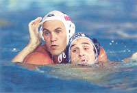 Természetes, hogy ezek után Csapó Gábornak, az UTE edzőjének nagyon tetszik a torna ... Igaz, az utóbbi időben mindig esik az eső, ha Szentesen játszanak, mosolyog a "bajusza" alatt. Horváth Istvánnak, a Kontavill-Lengrand Rt. igazgatójának is tetszik, sőt, büszke arra, hogy már tizenegyedik alkalommal rendezhetnek nemzetközi tornát. Mosolyogva mondja, hogy reméli, ez a szám folyton-folyvást nőni fog, mert ez azt jelenti, hogy jó a vízilabda, de jó a Szentes is. Krszinics, a szabadkaiak Óbecséről jött edzője viszont már nem ilyen jókedvű: "Négy kezdőjátékosom egyetemi elfoglaltsága miatt nem utazhatott velünk, de így is örülünk, mert legalább edzeni tudunk. Otthon hideg a vizünk, de talán a közeljövőben mi is kapunk sátrat." A délutáni két elődöntő aztán a várakozásoktól eltérően nem volt túl izgalmas. Az UTE nem vacakolt sokat a Galata ellen, igaz, a törökök túl hamar feladták a küzdelmet. A Matajsz vezette Mataró ugyan az utolsó percig küzdött szakadatlanul, mindhiába. A Szentes végig magabiztos volt, vezetett már 7-2-re is, s 8-5-el ért révbe. A vasárnapi fináléban így Szentes-UTE párharcot láthat a meccseket szép számban látogató publikum. Kontavill-kupa nemzetközi férfitorna, Szentes B csoport: CN Mataró (spanyol)- UTE-Taxi 2000 6-11 (2-1, 0-3, 3-2, 1-5). G: Florin 2, Matajsz, Q. Garcia, J. Garcia, Andrev, ill. Kovács R. 3, Dávid 3, Suti 3, Süveges, Ferkó. Irán-ZF Hungária Egri VK 2-13 (1-4, 1-3, 0-3, 0-3). G: Gholami, Jafari, ill. Kiss 3, Hegedűs 2, Veréb 2, Bíró 2, Bálint 2, Gott, Tóth P. A csoport végeredménye: 1. UTE, 2. Mataro, 3. Eger, 4. Irán. A csoport: Szpartak Subotica (szerb)- OSC-British Knights 7-16 (1-6, 2-3, 1-4, 3-3). G: Bojics 2, Branisavlevics, Miskovics, Samardzics, Kuti, Jovovics, ill. Mányai 4, Berezvai 3, Alibán 2, Lutter 2, Tiba 2, Békési, Ürögi, Keszthelyi. Kontavill-Szentesi VK-Galatasaray (török) 8-8 (2-2, 3-3, 1-1, 2-2). G: Berki 2, Szabó N. 2, Somogyi, Dormin, Szebeni, Hyc, ill. Gülsoy 4, Uslu 2, Silay 2. A csoport végeredménye: 1. Szentes, 2. Galatasaray, 3. OSC, 4. Subotica Az 5-8. helyért: Szpartak Subotica-ZF Hungária Eger 5-12 (1-3, 0-3, 3-3, 1-3). G: Samardzic Kuti, Jovovic, Guslov, Bolic. ill. Bíró 4, Veréb 3, Hegedűs 2, Kiss Sz., Tóth F., Kiss L. OSC-British Knigths-Irán 12-9 (2-2, 3-2, 2-2, 5-3). G: Mányai 4, Keszthelyi 2, Tiba 2, Békési, Alibán, Berezvai 1, Lutter, ill. Amirian 3, Gholami 3, Rakhshani 3. Elődöntő: Galatasaray-UTE-Taxi 2000 6-13 (0-3, 3-4, 1-1, 2-5). G: Gülsoy 2, Beskardesler 2, Okman, Bene, ill. Dávid 3, Kovács R. 2, Zentai 2, Benczur, Fáy, Kéri, Suti, Süveges, Ferenczi. Kontavill-Szentesi VK-CN Mataró 8-5 (2-1, 2-0, 2-1, 2-3). G: Dormin 3, Somodi, Biltsik, Juhász, Hyc Z., Szénászky, ill. A. Garcia 2, Florin 2, Urband Kozák János, Nemzeti Sport 2002.09.22. Kontavill-kupa nemzetközi férfitorna, SzentesHárom hibátlan csapat