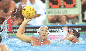 A klubcsapat sikervíkendje Két másodperc hiányzott ahhoz, hogy a Világliga-sorozatban először dőljön el büntetőpárbajban a három pont sorsa, ám a horvátok balkezese, Tomislav Primorac egy higgadt, emberelőnyben elengedett lövéssel még a rendes játékidőben megszerezte együttesének a győzelmet. Aminek akár titokban örülhetünk is, elvégre így válogatottunk máris pontelőnnyel vezeti a B-csoport tabelláját azután, hogy kétszer nyert idegenben, miközben az amerikaiak és a horvátok kölcsönösen elgyepálták egymást. Csoportellenfeleink Los Alamitos-i összecsapásai amúgy rendkívül izgalmasan alakultak, a második partit például úgy nyerte meg Veselin Djuho legénysége, hogy a hazaiak kilenc perc után 5-1-re vezettek, a megfiatalított horvát csapat innen tudott fordítani (annak ellenére, hogy két négyméterest is kihagyott). ![]() Fodor (labdával) és társai élesben jobban játszották meg a fórokat, mint az edzésen Az mindenesetre jó érzés, hogy az eredménysorokat böngészve leszűrhető: a magyar csapat aratta a legmagabiztosabb sikereket a VL-nyitányon. Persze, ez pusztán a kezdet, messze még a nyár vége, sőt, ha Kemény Dénessel beszélget az ember, a dialógusban rendre szóba kerül, hogy az igazi cél a címvédésre jó eséllyel pályázó athéni olimpiai csapat összekovácsolása. Hogy ehhez mennyiben járul hozzá az idei nyár, s ez az új sorozat, amely szinte klubcsapattá alakítja a válogatottakat - egy hét készülés, meccsek a víkenden -, érdekes témakör. "Az nem baj, ha a válogatott egy klubra hasonlít - mondja minderről a szövetségi kapitány. - Sőt, az igazán eredményes időszakokban a válogatott szinte klubcsapatként funkcionált, amelyben - és ez idén sincs másképp - nincsenek honvédosok, fradisták vagy BVSC-sek, angyalföldiek, netán olaszok vagy spanyolok, itt mindenki a csapatért van és küzd. Enélkül ebben a munka-meccs-munka-meccs ritmusban nem lehet jó eredményt elérni: régi megfigyelés, hogy a fontos összecsapásokon a kiélezett helyzetben az a fél tud elhúzni, amelyik »csapatabb« a másiknál. Néha nagyszerű gárdák maradnak alul, mert egyik-másik játékosuk képtelen a klubjából hozott előjogokat feladni." Kemény úgy véli, e tekintetben nem lehet ok a panaszra mifelénk: akiknek itt kell lenniük, azok itt vannak, a sérültek, a betegek és a nyaralók is megjöttek, s egyre jobban összeérnek. "Hétről hétre ideálisabb a helyzet, azaz Rómában kevésbé volt csapat a csapat, mint most, Moszkvában. Ami természetesen nem jelenti azt, hogy ezek után nem kaphatunk ki, hiszen az ellenfeleket is remek vízilabdások alkotják. Ôszintén szólva az oroszokkal szemben egy győzelemnek is örültem volna, különösen az idei előjelek alapján. Hiszen a keretet jóformán a fegyelmi bizottság állította össze, ezt követték a BL-döntőn összeszedett lelki és csontsérülések, majd a római torna megpróbáltatásai, ott csupán tizenkét játékost veszítettünk el - ha ideiglenesen is -, de három mérkőzés megvívásának a lehetőségét is." Ezek után minimum biztató a moszkvai 12-6 és 11-7, amely elsősorban a remekül működő zónavédekezésnek köszönhető, továbbá a higgadt előnymegjátszásnak - utóbbit kapitányi hangemelésekkel terhes délutánokon gyakorolták be a játékosok, akiknek az edzéseken csak ritkán volt türelmük a Kemény által kért szisztémához. Érdekes: élesben ment minden, akár a karikacsapás, azaz pontos passzolgatás a végtelenségig, aztán lövés a fór 15-20. másodpercében, az emberelőny legvégén, amikor az ellenfél védelme egyfelől teljesen szétzilálódott, másrészt már fél szemmel azt lesi, mikor tér viszsza a kiállított. Kérdés ugyanakkor, hogy a most oly eredményes taktikai rendszer kitart-e a nyár végéig. "Ezt a zónát január óta gyakoroljuk, s voltaképpen az előző négy év védekezéseinek a kombinációja, amiből az következik, hogy a régebbi formációkból egy hét alatt bármikor fel tudunk eleveníteni egy olyat, amelyre kevésbé tud az ellenfél felkészülni. Ugyanakkor az elsődleges cél mégiscsak a repertoár bővítése, ezt akár az eredmény rovására is meg kell valósítanunk, elvégre mi nem a hétvégékben, hanem az olimpiáig hátralévő három esztendőben gondolkodunk." Az, hogy a víkend ennyire jól sikerült, természetesen nem altathat el senkit: "Mindenki hozzájárult valamivel a győzelmekhez - beleértve az oroszokat is. Jelenleg ugyanis ők játsszák a legszebb vízilabdát, ez a pezsgés igen látványos, csakhogy rengeteg hibalehetőséget hordoz magában, amelyeket kellő koncentrációval ki lehet használni. Ami nem jelenti azt, hogy ha igazán összeállnak az oroszok, ne tudnának bárkit elsöpörni." Arra a kérdésre, hogy a pontosan egy hónapja kezdett felkészülés alapján kijelenthető-e, jobb mentális és fizikális alapokról indult a magyar együttes, mint a tavalyi, gyötrelmes idényben, Kemény azt felelte: "Inkább azt mondanám, hogy ebben a kísérleti évben több figyelmet lehet fordítani az apróbb-nagyobb részletekre, a fáradtságra, a technikai gyakorlásra, az egyéni képzésre. S bár nem kívánok belemerülni mélyebb kérdésekbe, az talán megjegyezhető, úgy tűnik, a sydneyi győztesek mostanra kerültek megint egyenesbe: megtartották az első négyéves ciklus pozitívumait, s megszabadultak az időközben rájuk ragadt negatívumoktól. Látják, elérhető, szép céljaik vannak, még ha az ezekig vezető út nehéznek is tetszik. Egyszersmind a csapatban bent lévők és abba bekerülni vágyók is tudatossá váltak hosszútávú céljaikat illetően, ami igazán alkotói légkört teremt. Pláne úgy, hogy újra és újra kiderül: a keretbe meghívott fiúk nagyon tudnak vízilabdázni, mellyel kapcsolatban újból és újból elmondom, hálá