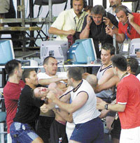 A horvát kormány rendkívül gyorsan reagált a történtekre: már elő is terjesztette a sportrendezvényeken történő incidensek megfékezése végett hozott törvényjavaslatot. Ez alapján az erőszakos viselkedés és rendbontás esetén 500-tól 10 000 kunáig (20 ezertől 400 ezer forintig) terjedő pénzbüntetéssel, valamint a sportrendezvényekről való 1-5 évig terjedő eltiltással büntethetők mindazok, akik balhét okoznak. A köznyelvben a szurkolók törvényeként emlegetett okirat ugyanakkor szabályozza mindazokat a deviáns viselkedésnek tekintendő cselekményeket, mint amilyen az alkohol- és a kábítószer-fogyasztás, a pirotechnikai eszközök használata és fegyver viselete. Sőt, még azokra a transzparensekre vagy zászlókra is kitér, amelyekkel gyűlöletet szítanak vagy erőszakos cselekményekre utalnak. Még a különböző szurkolói dalok is szabálysértőnek számítanak, ha faji, nemzeti vagy vallási gyűlöletre utalnak. Kranjban ilyenre is akadt példa… A törvény kitér a fiatalkorú szabálysértőkre is, akiket a rendőrség feljelent a szüleiknél, valamint az iskolájuknál is. A törvényt vélhetően az országgyűlés már e hónapban megtárgyalja, és ez alapján a rendőrség letartóztathat minden olyan személyt, aki rendbontással gyanúsítható - a mérkőzés befejezése után még két óráig élhet ezzel a jogával. A Horvát Televízió sportprogramjának főszerkesztője nyilvános levélben fordult a horvát közvéleményhez azért, mert Kranjban megverték a tv kommentátorát. A sportszerkesztőség azt követeli, hogy az állami apparátus súlyosan büntesse meg mindazokat a rendbontókat, akiket a videofelvétel alapján azonosítani lehet. Jura Ozmec sportriportert nemcsak megverték, hanem összetörték az általa használt asztalt és tévémonitort, valamint a laptopját, illetve ellopták a mobiltelefonját is. A kommünikében a sportszerkesztőség megemlíti, hogy az újságírók munkáját is lehetetlenné tették a huligánok - mi is tanúsíthatjuk, így volt. |