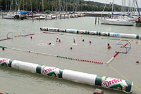 Visszatérve a profikhoz: Székely nem mindennapi csapatba igazolt! Mellette ugyanis többek között Kiss Csaba, Matajsz Márk és Nyéki Balázs lődözte a gólokat (csak a rend kedvéért: két nyert szettig tart a vízben lévő három plusz egy fős csapatok csatája, és egy játékért hat gólt kell szerezni), azaz hiába állt össze a Nemes Gábor, Tóth Frank, Tóth László, Bíró Attila, Bene András, Konrád János, Petőváry Attila, Kollár György fémjelezte, félelmetes múlttal rendelkező Budatours, a fiatalabbak nem adtak kegyelmet, a fináléban 6:4, 6:4-re nyertek. A két továbbjutott együttes közül így a Körkutyák nyerték a 100, a budatoursosok pedig az 50 ezer forintot. Persze, az Avanglion napszemüvegből és Dreher sörökből mindenkinek egyformán jutott - kell-e mondani, bornapok ide vagy oda, utóbbiak is mind egy kortyig elfogytak… Dreher srandbajnokság selejtező, 2. forduló, Eger 2500 néző. V: Madarasi A-csoport: Egri Bikhaverok-Bp. Izzók 2:0 (3, 1), Körkutyák-Bp. Izzók 2:0 (2,0), Körkutyák-Egri Bikhaverok 2:0 (1, 2). A csoport végeredménye: 1. Körkutyák, 2. Egri Bikhaverok, 3. Bp. Izzók. B-csoport: Léhűtők-Egri Fókák 2:1 (4, -5, 3), Budatours-Léhűtők 2:0 (2, 1), Budatorus-Egri Fókák 2:0 (2, 1). A csoport végeredménye: 1. Budatours, 2. Léhűtők, 3. Egri Fókák. Helyosztók. Az 5. helyért: Egri Fókák-Bp. Izzók 2:0 (2, 2). A 3. helyért: Egri Bikhaverok-Léhűtők 2:0 (4, 3). Döntő: Körkutyák-Budatours 2:0 (4, 4). A nyolcas döntőbe jutott: Körkutyák (Kiss Csaba, Matajsz Márk, Nyéki Balázs, Székely Bulcsú, Czirok Csaba, Komlósi Péter, Bíró Dániel, Torday Árpád, Horváth Tamás) és Budatorus (Nemes Gábor, Bene András, Bíró Attila, Konrád János, Petőváry Attila, Kollár György, Tóth Frank, Tóth László) Következik: Selejtező, 3. forduló, Tiszaújváros (július 19.) Várfürdő-kupa, nemzetközi férfi juniortorna, Gyula A-csoport Magyarország-Spanyolország 6-5 (1-2, 0-2, 3-0, 2-1) Gyula, 400 néző. V: Belevsztov (ukrán), Ratonjics (szlovén) MAGYARORSZÁG: Bajnógel - VARGA DÉNES 1, Varga Dániel 1, Tóth M., Gór-Nagy, Hosnyánszky, Létay 2. Cs: Decker, Süveges, Hegedűs, CZIGÁNY 2, Balatoni. Szövetségi kapitány: Godova Gábor, Derekas Szilárd SPANYOLORSZÁG. Góllövők: Espanol 2, Ignacio Casado, Ciutat, Garriga 1-1 Gól - emberelőnyből: 9/3, ill. 5/2 Négyméteresből: -, ill. 1/1 Görögország-Németország 12-3 (2-1, 4-0, 3-1, 3-1) Az A-csoport állása: 1. Magyarország 6, 2. Spanyolország 5, 3. Görögország 3, 4. Németország 0 B-csoport Olaszország-Oroszország 5-6 (1-1, 1-2, 1-0, 2-3) Egerben is ismert játékosok strandpólóznak Kissék csapata az esélyes -------------------------------------------------------------------------------- forrás: AZ, Nemzeti Sport 2003.07.12 -------------------------------------------------------------------------------- A rendkívül sikeres rajt után ezúttal Egerben találkoznak a pólósok, akik a Dreher strandbajnokság keretein belül mérik össze erejüket. Egy héttel ezelőtt Balatonaligán, a Club Aligában (ahol a legújabb tervek szerint augusztusban egy Magyarország–Olaszország strandválogatott mérkőzésre is jó esély kínálkozik!) a Steinmetz Ádám, Szívós Márton kettős fémjelezte csapat legyőzte a két olimpiai bajnokot, Märcz Tamást és Varga I Zsoltot, valamint az Európa-bajnok Vincze Balázst is soraiban tudó gárdát, majd úgy délután kettő óra tájban a közönség vette birtokába a pályát. "Egerben sem lesz másként a program. A profik mérkőzései után bárki vízbe ugorhat, akinek van kedve, a strandon összeálló alkalmi csapatok kipróbálhatják, milyen is a vízilabda” – magyarázta a strandszakág két honi megteremtője, a bajnoki sorozat rendezője, azaz az Ambrus Tamás, Petőváry Zsolt exválogatott duó. A bikavér hazájában amúgy bornapokat tartanak, így igazán mozgalmas és üdítő program vár a kilátogatókra. A selejtező második fordulójából is két együttes kvalifikálja magát a kiskunmajsai nyolcas döntőbe (augusztus 2–3.), amiért óriási lesz a harc a csapatok között. A szakemberek nem véletlenül tartják a legnagyobb esélyesnek Egerben a Körkutyák elnevezésű társulatot, hiszen olyan neves pólósokat találunk benne, mint Kiss Csaba, Nyéki Balázs vagy éppen a Matajsz Márk, Komlósi Péter szentesi kettős. Mindazonáltal a Budatourst sem kell félteni, hiszen Bíró Attila, Tóth László, Nemes Gábor és ifjabb Konrád János neve is jól cseng az uszodák világában. Két egri gárda is színre lép (Petik Attila, Áncsán András, hogy két ismert nevet említsünk), mellettük a Bp. Izzó, valamint a Léhűtőkre keresztelt, meglepetésre készülő együttes csatázik. A közönségnek szervezett megannyi játék közül kiemelkedik a büntetődobó-verseny (Kósz Zoltán áll majd a kapuban!), illetőleg a ráúszóverseny (a bátrak Székely Bulcsút próbálhatják meg lehagyni!). Dreher strandvízilabda ob, selejtező Iskolai bizonyítvány: ötös -------------------------------------------------------------------------------- forrás: AZ, Nemzeti Sport 2003.07.06 -------------------------------------------------------------------------------- Még péntek éjszaka is javában folytak az előkészületek a Club Aliga területén elhelyezkedő jachtkikötőben - a sportág strandbajnokságának (amely, mint azt az összes jelenlévő játékos, olimpiai bajnok és OB II-es pólós egyaránt hangsúlyozta: remekül illeszkedik a nyári programba) sikeres nyitánya érdekében a két szervező, Ambrus Tamás és Petőváry Zsolt saját kezűleg molinózta ki a pályát a hirdetők tábláival.