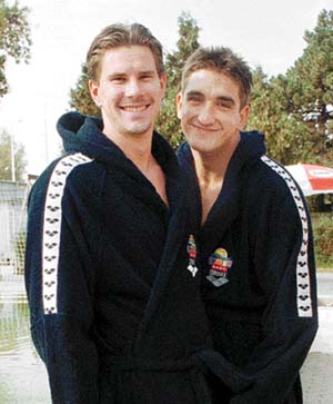 -------------------------------------------------------------------------------- forrás: Szegedi Ircsi, A színes Sport 2001.10.11 -------------------------------------------------------------------------------- Szegeden játszott bajnokit a Honvéd színeiben dr. Molnár Tamás olimpiai bajnok vízilabdázónk, aki egykori nevelőegyesülete ellen szállt vízbe. "Volt klubomból Törököt, Módot, Molnárt régóta ismerem - mondja Molnár. - A Szeged egy szinten van az Újpesttel, a Fradival, a BVSC-vel. Akár dobogón is végezhet, de a négy közé mindenképpen bejuthat." Molnár három évre elkötelezte magát a fővárosi klubhoz. Jelenleg EU-s jogi képzésben részesül, és egyetemi szakvizsgára is készül. A későbbiekben a sportdiplomata és a sportvezetői munkát közelebb érzi egyéniségéhez, mint az edzői mesterséget. Nem tagadja, a korábbi időszakokkal összevetve most jól megfizeti őt a Honvéd. - Az új Opel Vectrámat is ennek a szerződésnek köszönhetem. ![]() Két olimpiai bajnok: Biros (balról) és Molnár Nem titok, korábbi kintlevőségei több millió forintra rúgtak. A két hazai tartozás fejében megvette a saját játékjogát. Külföldről még tartoznak neki, de majdcsak rendeződik a helyzet. Hozzáteszi, a Honvéd egyik támogatója, a Westel Magyarországon szeretné megrendezni a Bajnokok Ligája négyes döntőjét. - Ha jó lesz a sorsolásunk, akkor a fináléba juthatunk. Akkor pedig biztosan megkapjuk a rendezést, hiszen a nyári Eb-t kiválóan megszervezte a szövetségünk. Hazai vízben pedig a Honvéd akár a végső BL-elsőséget is megszerezheti. |