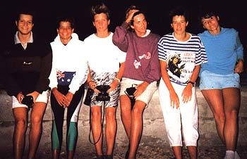 Uramisten mennyi lány, s mind milyen csinos! Balról Eleki Krisztina, aztán Ötvös Éva, Szabó Tünde, Buth Zsuzsa és Hegedűs Ági. 1989-ben Kuba csak azért nem borult a lábaink elé, mert a helyiek közül viszonylag kevesen tudtak az ottlétünkről.