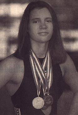 - Én is a Sportba járok úszni, és mindig fölbosszantottam magam azon, hogy az edzők mennyit üvöltöznek a gyerekekkel. Önnel is sokat kiabáltak? - Nem, nekem elég nyugodt edzőm volt, nagyon rendes volt hozzám. 9 éves koromban kerültem át a Spartacusba, 13 esztedősen már naponta kétszer kellett edzésre járnom. 14 éves korom óta vagyok jelenlegi edzőmnél, Kiss Lászlónál. Vele már nagyon sokat úsztunk. Alapozásnál 14-16 km-t, ezenkívül másfél órát kell tornázni, naponta 6 és fél óra az edzés. - Mikor tökélte el, hogy versenyző lesz? - Már óvodás koromban úsztam versenyeken, az OSC-ben voltak házi versenyek. Általános iskolásként indultam kerületi, budapesti és országos versenyeken. - És nyert? - Nem. Általában utolsó voltam. Nagyon későn kezdtem jobb eredményeket elérni. 13 évesen voltam serdülő országos bajnokságon harmadik, aztán rá félévre váratlanul megúsztam az ifi Eb-szintet. Változott a technikám is, egyre gyorsabb lettem. Genfben ifjúsági Európa-bajnok lettem 14 évesen, majd egy hónap múlva a felnőtt Eb-n harmadik helyezést értem el. A 4x100 méteres vegyesváltóban pedig másodikok lettünk attal a csapattal, amelynek még Egerszegi Krisztina is tagja volt. - Rendszeresen összehasonlítják Egerszegi Krisztinával ... - Végülis jó érzés, hogy egy 5szörös olimpiai bajnokkal hasonlítanak össze. Ha én csak kis részét tudnám elérni annak, amit ő, már akkor is nagyon örülnék. - Mit szeretne elérni az olimpián? - Előre erről nem akarok beszélni, mert mi van, ha nem sikerül ... - Szóval nyerni szeretne? - Hát igen, de ha nem jön össze, akkor sem leszek elkeseredve. - Hogy lehet ennyi edzés mellett tanulni? - Leérettségiztem, most csak angolul kell tanulnom, az nem olyan megterhelő. Amikor még iskolába jártam, a tanuláson és az úszáson kívül másra nem nagyon jutott idő.
