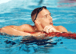 Gáspár mellett Kerékjártó Tamás is hozta magát a bajnokság utolsó napján - kétszáz vegyesen a negyedik helyen végzett. A legjobb időeredmények is a "magyar számokban" születtek: ötven gyorson az ötszörös rövid pályás világbajnok, amerikai Walker 22.10-zel nyert, kétszáz vegyesen pedig a szintén tengerentúli Wilkens 2:00.67-es idővel érkezett célba. Amerikai nyílt bajnokság, Seattle Férfiak. 50 m gyors: 1. Walker 22.10, 2. Muhammad 22.68, 3. Weghorst 22.71, 4. Lezak és Gáspár Zsolt (magyar) 22.76 - országos csúcs, régi: 23.09, Gáspár, 1998. 1500 m gyors: 1. Smith (brit) 15:10.35, 2. Thompson 15:18.47, 3. Margalisz (orosz) 15:19.51. 200 m vegyes: 1. Wilkens 2:00.67, 2. Dolan 2:01.21, 3. Karnaugh 2:01.62, 4. Kerékjártó Tamás (magyar) 2:03.48. 4x100 m vegyes váltó: 1. Irvine Novaquatics 3:43.51, 2. Santa Clara 3:44.16, 3. Curl-Burke 3:45.44, ...9. University California 3:52.08 - a váltónak Kerékjártó is tagja volt. Nők. 50 m gyors: 1. Torres 25.09, 2. Stone 25.33, 3. Martino 25.88. 1500 m gyors: 1. Munz 16:03.30, 2. Bennett 16:08.80, 3. Cooke (brit) 16:28.49. 200 m vegyes: 1. Moravcová (szlovák) 2:14.44, 2. Quance 2:15.14, 3. Coughlin 2:16.91. 4x100 m vegyes váltó: 1. Dallas 4:11.99, 2. Nagy-Britannia 4:13.43, 3. Irvine Novaquatics 4:13.50, ...9. Purdeu 4:24.19 - a váltónak a magyar Lakos Gyöngyvér is tagja volt. (A nem jelölt nemzetiségű versenyzők amerikaiak) A pontverseny végeredménye. Férfiak. 1. Dolan 74 pont, 2. Walker 60, 3. Margalisz 56, ...10. Gáspár 41.5, ...57. Kerékjártó 15, ...94. Simon Jácint (magyar) 5. Nők. 1. Munz és Moravcová 77-77, 3. Torres 73 SE, Nemzeti Sport 2000.04.03. |