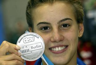 100 m hát. Európa-bajnok: Stev Theloke (Németország) 54.42 - Európa-csúcs, régi: 54.43, Theloke, 1998, 2. Markus Rogan (Ausztria) 54.54, 3. Pierre Roger (Franciaország) 54.89, 4. S. Driesen (Németország) 54.93, 5. Horváth Péter (Magyarország) 55.18, 6. M. Strahija (Horvátország) 55.36, ... 9. Bodrogi Viktor (Magyarország) 55.65 100 m mell. Eb: Oleg Liszogor (Ukrajna) 1:00.29, 2. Roman Szludnov (Oroszország) 1:00.72, 3. Huges Duboscq (Franciaország) 1:01.04, 4. J. Pihlava (Finnország) 1:01.27, 5. Güttler Károly (Magyarország) 1:01.58, 6. Flaskay Mihály (Magyarország) 1:01.69 50 m pillangó. Eb: Jere Hard (Finnország) 23.50 - Európa-csúcs, régi: 23.57, Frölander, svéd, 2001, 2. Thomas Rupprath (Németország) 23.78, 3. Lars Frölander (Svédország) 23.85, 4. E. Holst (Hollandia) 24.10, 5. J. Keizer (Hollandia) 24.11, 6. J. Noriega (Spanyolország) 24.23, ... 8. Gáspár Zsolt (Magyarország) 24.29 200 m vegyes. Előfutam: 1. Kerékjártó Tamás (magyar) 2:01.39, 2. Sievinen (finn) 2:01.63, 3. Rogan (osztrák) 2:01.96, ... 5. Batházi István (magyar) 2:02.26 - Kerékjártó és Batházi továbbjutott. Elődöntő: 1. Kerékjártó Tamás 2:00.38, 2. Boggiato (olasz) 2:00.40, 3. Sievinen 2:00.64, ... 5. Batházi István 2:01.39 - Kerékjártó és Batházi döntős Nők 100 m gyors. Előfutam: 1. Moravcová (szlovák) 55.48, 2. Seppala (finn (55.68, 3. Dallmann (német) 55.69. Elődöntő: 1. Van Almsick (német) 54.48, 2. Moravcová 54.86, 3. Popcsanka (fehérorosz) 54.95 200 m hát. Eb: Sztanyiszlava Komarova (Oroszország) 2:09.49, 2. Nina Zsivanyevszkaja (Spanyolország) 2:10.27, 3. Irina Amsennikova (Ukrajna) 2:11.59, 4. L. Ornstedt (Dánia) 2:11.94, 5. D. Mocanu (Románia) 2:11.99, 6. A. Buschschulte (Németország) 2:12.09, ... 12. Szepesi Nikolett (Magyarország) 2:16.39 100 m mell. Előfutam: 1. Igelström (svéd) 1:09.33, 2. Kovács Ágnes (magyar) 1:09.63, 3. Bogomazova (orosz) 1:09.65 - Kovács Á. továbbjutott. Elődöntő: 1. Igelström 1:08.14, 2. Kovács Ágnes 1:09.32, 3. Bogomazova 1:09.45 - Kovács Á. döntős 50 m pillangó. Eb: Anna-Karin Kammerling (Svédország) 25.57 - világ- és Európa-csúcs, régi: 25.64, De Bruijn, holland, 2000, 2. Daniela Samulski (Németország) 26.86, 3. Chantal Groot (Hollandia) 26.91, 4. A. Korc (Lengyelország) 27.04, 5. A. San Juan (Spanyolország) 27.30, 6. V. Borochovski (Izrael) 27.36, ... 27. Taray Katalin (Magyarország) 28.93, ... 29. Papp Renáta (Magyarország) 29.02 4x200 m gyorsváltó. Eb: Németország (Petra Dallmann, Alessa Ries, Hannah Stockbauer, Franziska van Almsick) 7:59.07, 2. Spanyolország (Laura Roca, Melissa Caballero, Erika Villaecija, Tatiana Rouba) 8:05.83, 3. Svédország (Josefin Lillhage, Johanna Sjöberg, Lisa Wanberg, Ida Mattsson) 8:08.46, 4. Svájc (N. Zahnd, H. Miluska, Ch. Strasser, F. Rigamonti) 8:10.07, 5. Hollandia (M. Veldhuis, C. Lemmen, M. van Rooijen, H. van Stralen) 8:10.98, 6. Dánia (J. Hjörth-Hansen, E. Zachariassen, T. Gretlund, S. Skou) 8:13.33 Műugrás Férfiak 1 m, selejtező: 1. Liszovszkij (orosz) 396.24, 2. Puhakka (finn) 372.96, 3. Marconi (olasz) 366.15, ... 9. Lengyel Imre (magyar) 334.95 - Lengyel nem jutott döntőbe Nők 1 m, selejtező: 1. Fischer (német) 279.33, 2. Umiszkova (orosz) 276.54, 3. Iljina (orosz) 264.90, ... 9. Barta Nóra (magyar) 231.78 - Barta nem jutott döntőbe Torony, döntő. Eb: Anke Piper (Németország) 337.05, 2. Tania Cagnotto (Olaszország) 331.32, 3. Olga Leonova (Ukrajna) 321.93, 4. O. Zsupina (Ukrajna) 311.46, 5. D. Sáez de Ibarra (Spanyolország) 301.32, 6. O. Klokova (Oroszország) 300.03 ![]() Tania Cagnotto (ITA) sal, Nemzeti Sport 2002.07.31. | |||||||||||||||||||||||||||||||||||||||||||||||||||||||||||||||||||