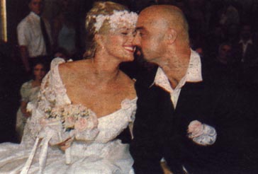 Egy igazán elbűvölő páros esküvőjén készült ez a felvétel: Rábaközi Andrea fotómodell fogadott örök hűséget a sikeres sportpályafutással büszkélkedő vizipólósnak, Dala Tamásnak.