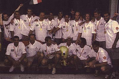 A felkészülési tornákon, aztán az Eb-előcsatározásokban is kiváló védekezésének köszönhette csapatunk sorozatos győzelmeit - erre a szokásos 5-6, legfeljebb 7 helyett épp a döntőben kapott 12 gólt. De ez most ugródeszkát jelentett, hiszen nem volt mit tenni, mint megszállott módjára támadni, mérlegelés és ijedezés nélkül lőni, lőni és lőni. Még szerencse, hogy ez a korosztály ifiként és juniorként többször végigverte a világot, mert Firenzében is bámulatos önbizalommal és mnagától értetődő természetességgel lépett túl egy megoldhatatlannak tűnő helyzeten. Ebben a káprázatos egyéni teljesítmények segítették: Biros mondabeli ötöse mellett dr. Molnár Tamás is háromszor betalált, Vári Attiláé volt az első, és mivel 0-3-nál esett, a legfontosabb gól, de a 12szer áldozatul esett Kósz Zoltán is több bravúrt bemutatott, ha például az elején nem fog két óriási ziccert, 1-5-tel megy el az első negyed, és akkor talán a meccs is. Így viszont az utolsó pillanatokban sevillai méretű ünneplés kezdődött, ötször annyi magyar góllal és körülbelül háromszor annyi magyar szurkolóval. Biros külön szám, róla külön is olvashatnak, dr. Molnár kijelentette, hogy élete három legjobb mérkőzése közé helyezi a mostanit, de hozzátette: reméli, a következő sikerek hamar leszorítják a dobogóról. Vincze Balázst a sydneyi olimpiáról kérdezték, mire ő azt üvöltötte, ezt a lendületet nem 2000-ig, de 2004-ig, Athénig elviszi. Dr. Kemény Dénes szövetségi kapitányt arra kértük, hasonlítsa össze a sevillai és a firenzei finálét. Azonnal rávágta, ez képtelenség, aztán ugyanazzal a lendülettel megadta a cáfolatot és a feleletet is: "Két éve a mérkőzés minden időszakában volt esélyünk a győzelemre, most viszont az elején úgy tűnt, nincs, ennyiben ez nehezebb volt."