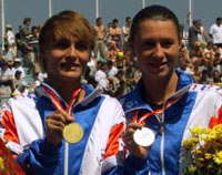 Orosz aranyérmek szombaton az úszó Eb-n Az isztambuli úszó Európa-bajnokság harmadik napján két orosz aranyérem született: Dmitrij Szautyin megnyerte a férfi toronyugrás döntőjét, míg Alekszej Akatyijev a hosszútávúszásban végzett az élen. Legalább ekkora visszhangot keltett azonban az, hogy a rendező Törökország úszószövetsége bojkottot helyezett kilátásba az egyik főszponzor, a Speedo sportszergyártó cég ellen, mivel a cég biztonsági okokra hivatkozva nem engedte el két munkatársát az Eb-re. A toronyugrók viadalában a címvédő Szautyin - aki a szám atlantai olimpiai bajnoka is egyben - az elődöntő 2. helye után a fináléban már magabiztosan előzte meg a német Heiko Meyert. A 25 éves versenyző sikerének értékét növeli, hogy tavaly novemberben a hátában egy gyulladás keletkezett, amit műtéti beavatkozással kellett orvosolni. Közben kiderült, hogy Nick Shackell, a 100 m-es gyorsúszás brit csúcstartója a londoni indulás előtti pillanatokban mégis a távolmaradás mellett döntött. A nemrég nősült versenyző hazatelefonált a repülőtérről, és végül felesége aggódásának hatására elállt az utazástól. Nem ment el Isztambulba a Speedo két munkatársa sem. Ahogy a cég egy közelmúltbeli közleménye fogalmazott, a vállalat hagyományos politikájának az az egyik alapelve, hogy nem teszi ki szükségtelenül veszélynek az alkalmazottait. Egy újabb, szombati kommüniké szerint az érintett két személy maga állt el az úttól, viszont a Speedo az Európa-bajnokságot továbbra is teljes mértékban támogatni kívánja. A Török Olimpiai Bizottság részéről Togay Bayatli úgy reagált, hogy a barátságtalan lépés miatt az ország úszócsapata bojkottálni fogja a sportszergyártó cég termékeit. A főtitkár szerint egyébként a média - és különösen az utóbbi fél évben a politikai újságírók - hazugságai festenek rossz képet a török közállapotokról. - Azt sugallják, hogy nálunk nincs rend - fejtette ki Bayatli. - Isztambul azonban éppolyan biztonságos hely, mint bármely európai nagyváros. Az elmúlt hat hónapban 65 különböző sporteseményre került sor Törökországban, minden probléma nélkül. Az utóbbi fél évben nagyon keményen dolgoztunk, ezért a sport területén tevékenykedőknek nem kellene összekeverniük a politikát a sporttal. Csendes Norbert a 17., Magyar Sándor pedig a 18. helyen végzett a hosszútávúszók nehezebbik számában, a 25 km-es távon. Mindketten majdnem egy órányival elmaradtak a 19 fős mezőny legjobbjának bizonyuló orosz Alekszej Akatyijevtől. A 25 éves győztes 5 és 25 km-en is világ- és kontinensbajnokként érkezett az Eb-re. [origo] 1999. július 24. Úszó, műugró, műúszó és hosszútávúszó Eb 1999Újabb orosz érmek az Úszó Eb-n Az orosz Vera Iljina nyerte vasárnap a nők 3 méteres műugrószámát az isztambuli úszó-, műúszó- és műugró Európa-bajnokságon.